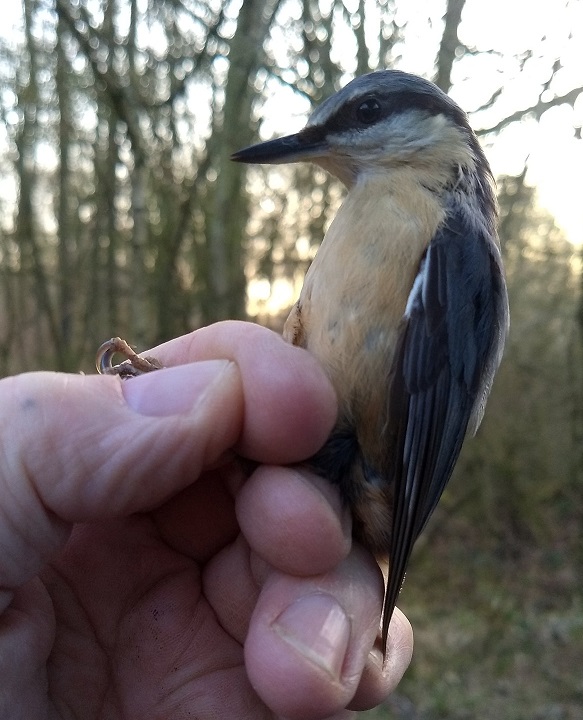 The first bird out of the nets this morning was a female Nuthatch: