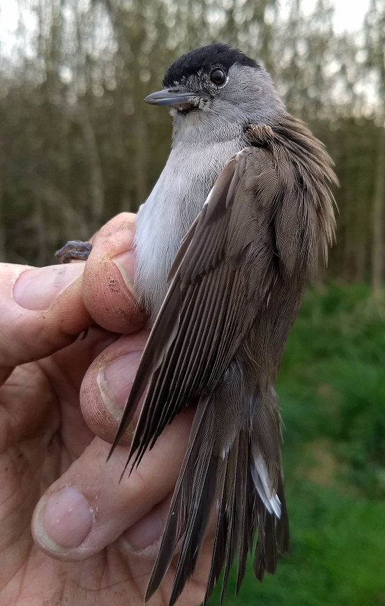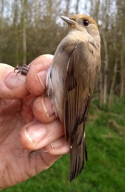 I was hoping that we would have a few more Chiffchaff than we had last time and that we might be lucky enough to catch an early Blackcap. The only Blackcap we had caught previously in March at Lower Moor Farm was on the 23rd March 2019. The earliest date for catching a female Blackcap was on the 5th April in both 2017 and 2018. In fact, I haven’t ever caught a female Blackcap at any of my sites in March. So I was delighted to have a male Blackcap in the nets in my second round of the morning. Over the rest of the morning I caught another 4 males and the last one I took out of the net was a female: