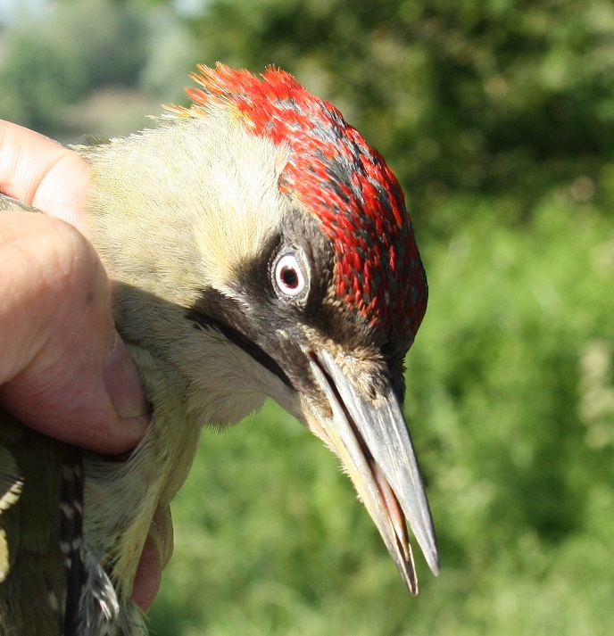 The list for the day was: Green Woodpecker 1; Wren 1(3); Dunnock [1](2); Robin 1[1]; Blackbird 1(2); Blackcap 2(1); Garden Warbler [1](3); Chiffchaff 1(2). Totals: 7 adult birds ringed from 6 species; 3 juvenile birds ringed from 3 species and 13 birds retrapped from 6 species, making 23 birds processed from 8 species.