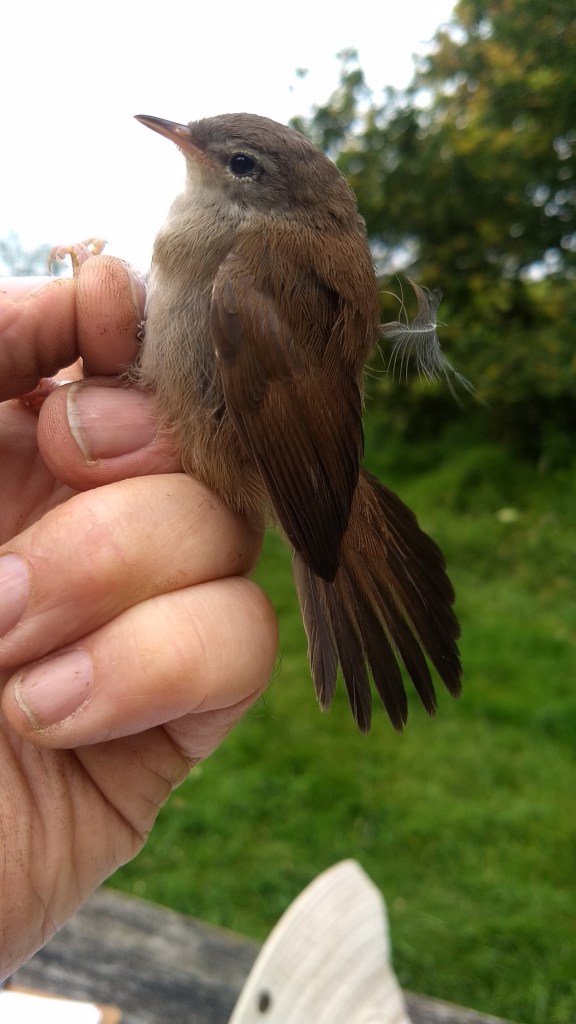 So how did CES7 in 2021 compare? Treecreeper (1); Blue Tit [2]; Great Tit [1]; Dunnock [1](1); Robin [2]; Blackbird (1); Cetti’s Warbler [1]; Blackcap 1(1); Whitethroat (1); Chiffchaff (2); Bullfinch [1]. Totals: 1 adult ringed, 8 juveniles ringed from 6 species and 7 birds retrapped from 6 species, making a total of 16 birds processed from 11 species. These are worrying results: where are the Blackcap and Chiffchaff young? Did the adults keep moving in May, to get away from the bad weather, or did their first broods fail? Hard to know, unless we get some retrap information on Lower Moor ringed birds being caught elsewhere. Hopefully there will be an improvement with second and possibly third broods.