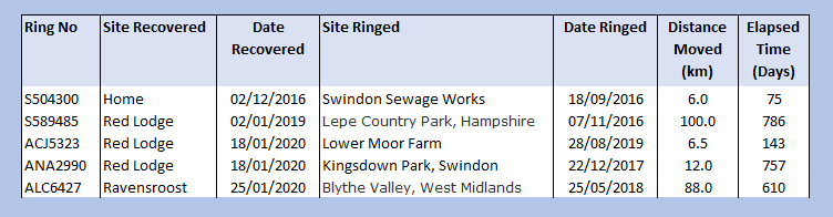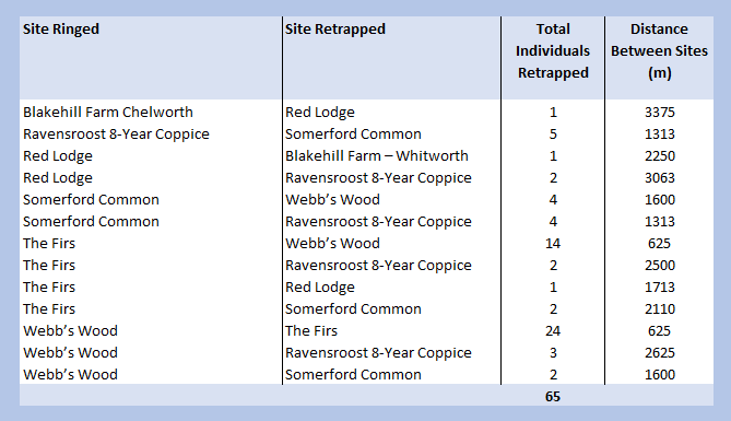 The other movements around the Braydon Forest sites are also quite interesting. I haven’t done individual records, just a summary: