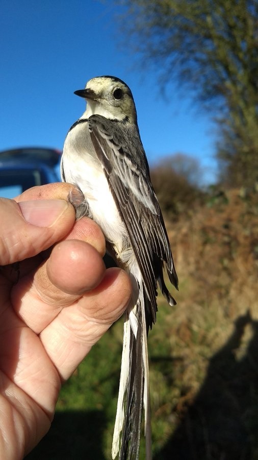I catch very few of these. As a trainee, ringing at various Thames Water Sewage Treatment Works, I got to process a reasonable number of them (27 Pied Wagtails and 13 White (yes, White) Wagtails, mainly at Marlborough Sewage Works – not too far from where I was today). Since then, in 9 years, this is only the fifth that I have managed to catch. They fly slowly, have good eyesight and can generally avoid the nets.