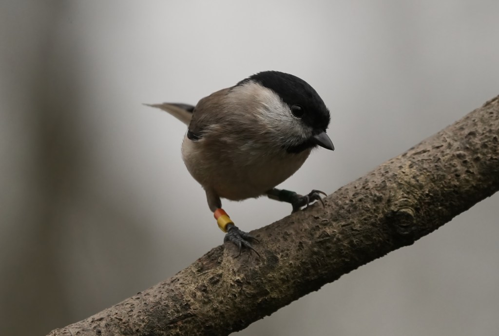 I caught and ringed my second Marsh Tit of the year: colour ringed metal over black on the left leg and yellow over red on the right leg: