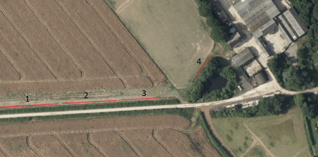 As ever, Rosie joined me to help set up before heading off to do her day job with the Wildlife Trust. Knowing that I was going to be working solo for much of the session, we only set four rides: three of 2 x 18m nets (1,2,3) and one single 18m net (4). The multiples were set along the leeward side of the main path hedgerow and the singleton adjacent to the pond: