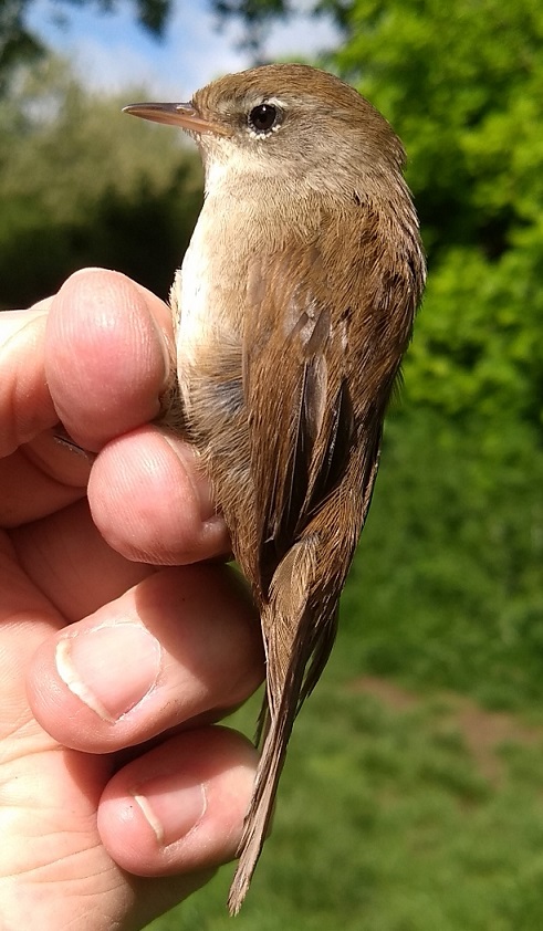 I was on site just after 5:00 and joined bright and early (5:30) by David, and a little later in the session by Anna. We set all of our usual CES nets. Last time, although we caught fewer birds, every net set caught. Today one of our most reliable nets failed to catch a single bird. That is not to say that it wasn’t full of birdsong: Cetti’s Warbler, Blackcap, Garden Warbler and Chiffchaff kept up a constant chorus all morning, they just avoided the nets.