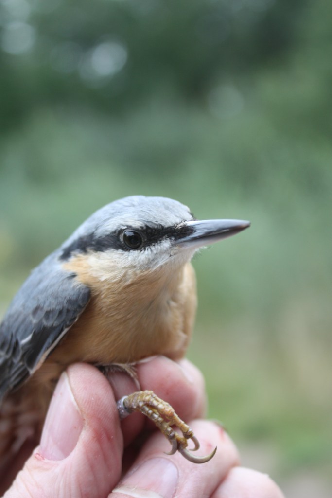 As expected, the catch was very Blue Tit heavy and was as follows: Nuthatch 2; Blue Tit 13(5); Great Tit 2(8); Coal Tit (3); Marsh Tit (1); Robin 1(2). Totals: 18 birds ringed from 4 species and 19 birds recaptured from 5 species, making 37 birds processed from 6 species.
