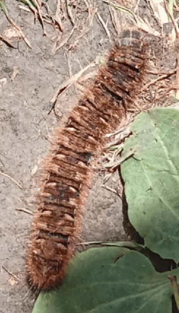It is a caterpillar of the Oak Eggar, Lasiocampa quercus. They overwinter as a half-grown caterpillar and then feed up until pupating in June. This specimen was approximately 8cms long. Up on the balcony of the Observatory this caterpillar turned up: