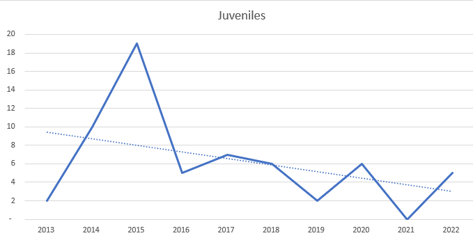 Looking to see whether the reductions are down to a change in the numbers of juveniles produces the following graphs: