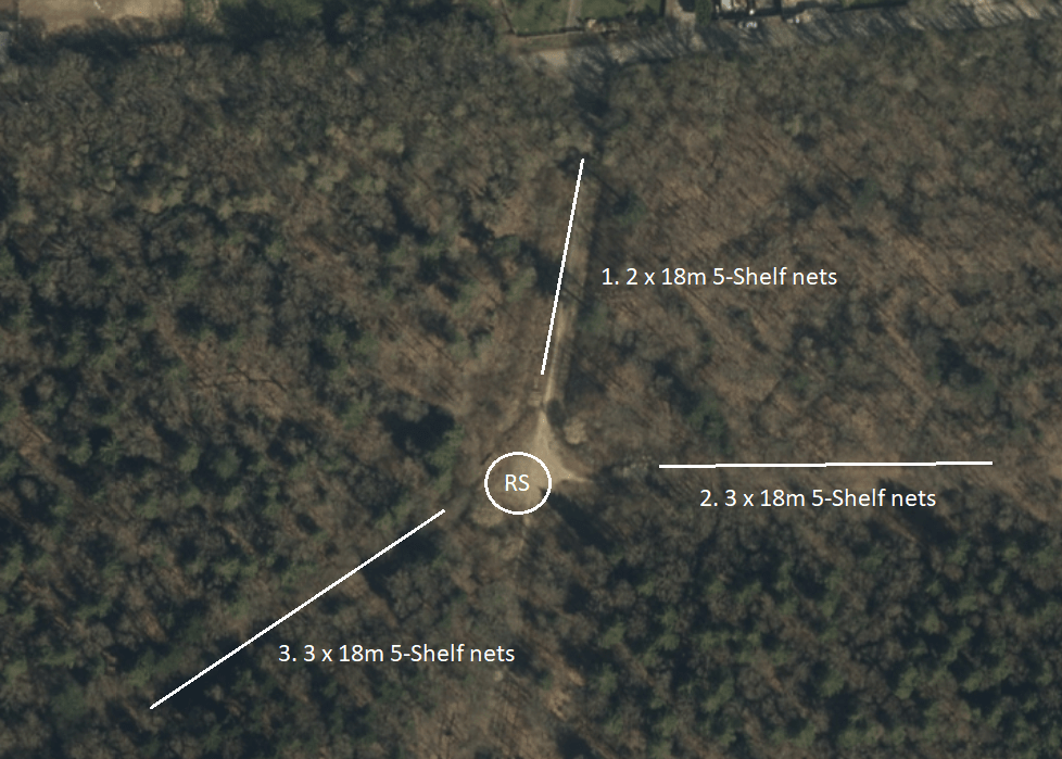 I set various lures: for Redwing and Lesser Redpoll on net 1; Redwing and Siskin on net 2 and Goldcrest, Lesser Redpoll and Siskin on net 3. Net 3 because, whilst like the others it is mixed woodland, this one is in an area with quite a high density of conifers.