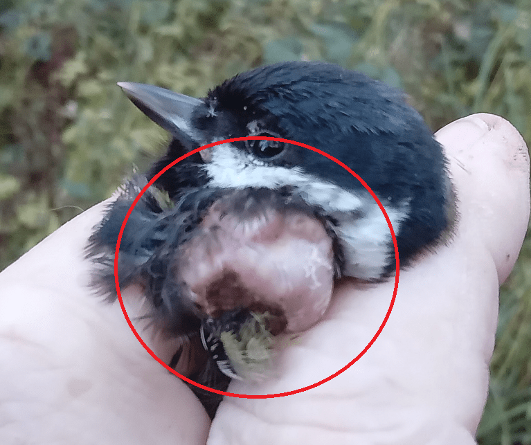 The pustule actually had a feather growing through it’s middle. It is the worst Avian Pox I have seen on a single bird. Needless to say, I didn’t put a ring on it and, after releasing it, I used copious amounts of anti-viral hand sanitiser before going near any other birds.