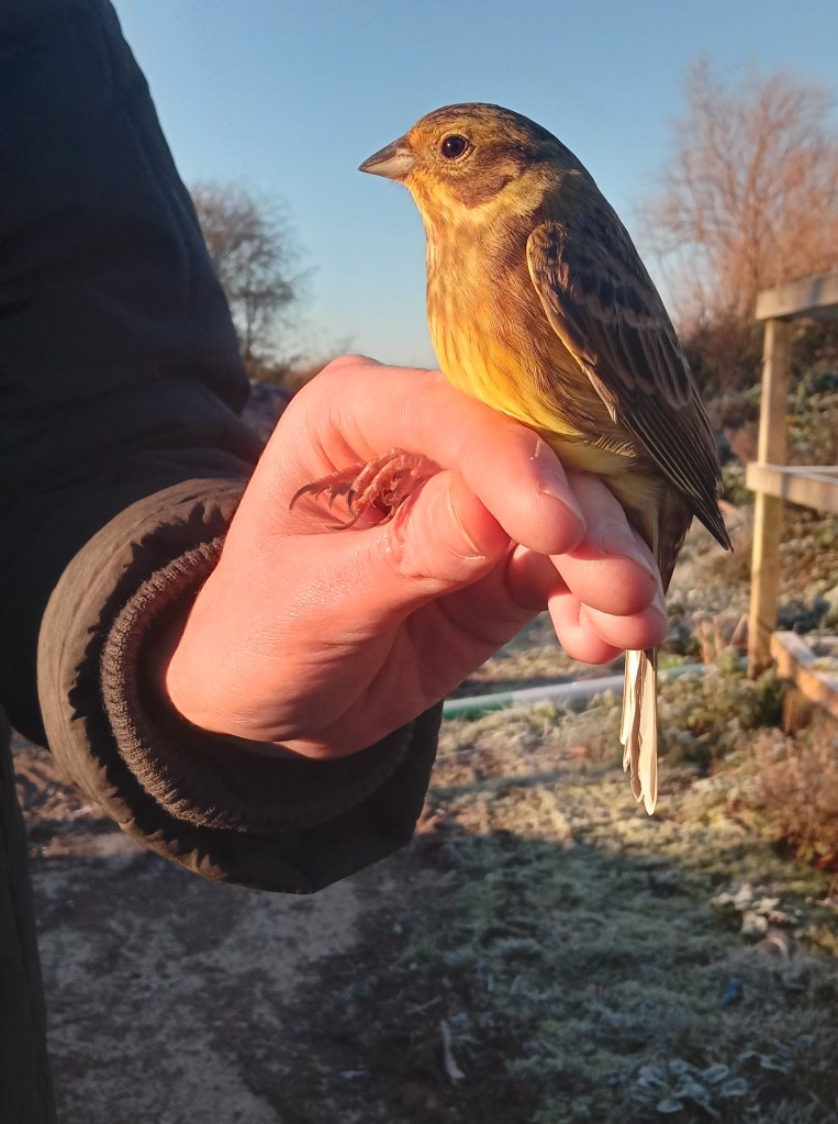 Unfortunately, that was it. No more birds until we decided to pack up, which we did at 11:00. It was an enjoyable session, despite the small catch. With three of the trainees each getting their first Yellowhammer and Adam also getting his first Linnet, it was certainly good for them. Also, it made my day to ring my first Yellowhammer of the year, but also to be able to spend time showing trainees the dark arts of ageing and sexing both Linnet and Yellowhammer.