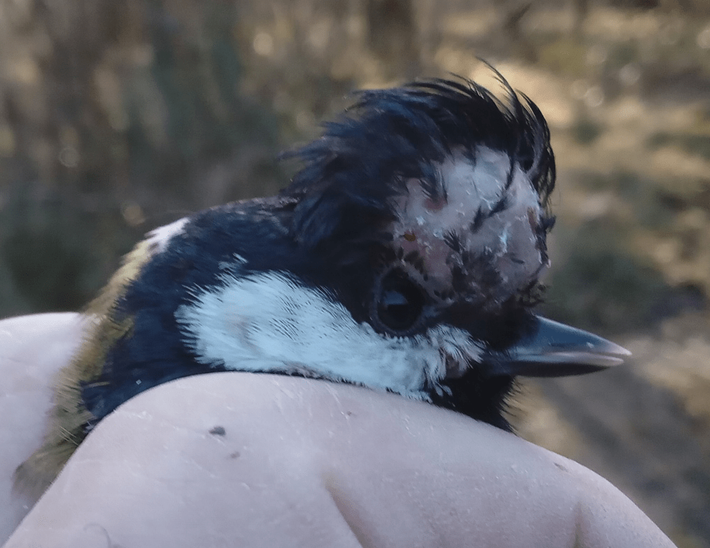 This winter there does seem to have been a considerable resurgence of two particular diseases within the local bird populations: Fringilla papillomavirus in the Chaffinches and Avian pox in Great Tits. Today we were blessed not to find any Chaffinch with FPV, hence we could ring the bird, but this poor bird we did catch: