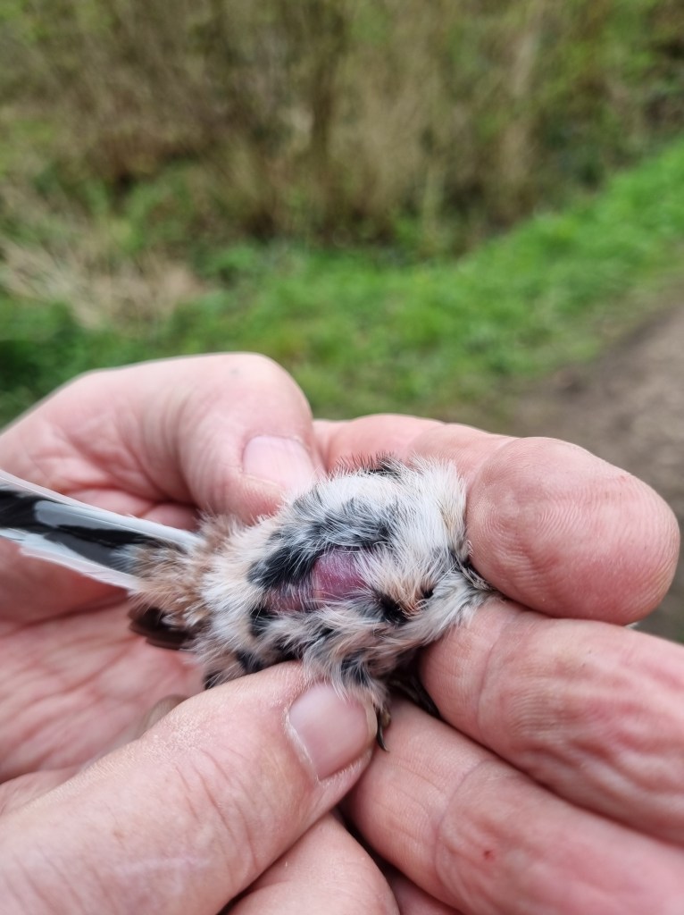 Long-tailed Tit, Aegithalos caudatus. Photo 2 showing the well-developed brood patch. (Photos courtesy of Sarah Emery)