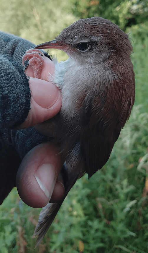 This was the list for the session: Blue Tit (1); Great Tit [1](1); Wren [3]; Dunnock (1); Robin [2](2); Blackbird (2); Garden Warbler [1]; Cetti’s Warbler [1](2); Reed Warbler 1; Blackcap 2[7](3); Chiffchaff [2](1); Bullfinch 1. Totals: 4 adults ringed from 3 species, 17 juveniles ringed from 7 species and 13 birds retrapped from 8 species, making 34 birds processed from 12 species.
