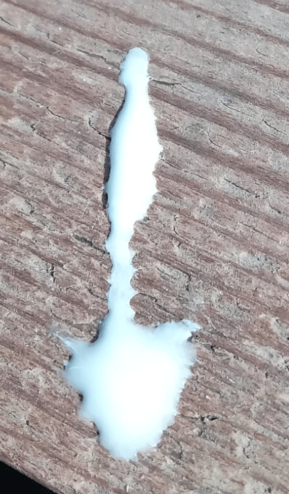 Finally, we retrapped two Blackbirds, a male and a female. Laura was a little concerned at the state of the male’s cloacal protuberance. When she passed it to me to see what she meant, it did look rather red and sore, and then it deposited this on the ringing table: