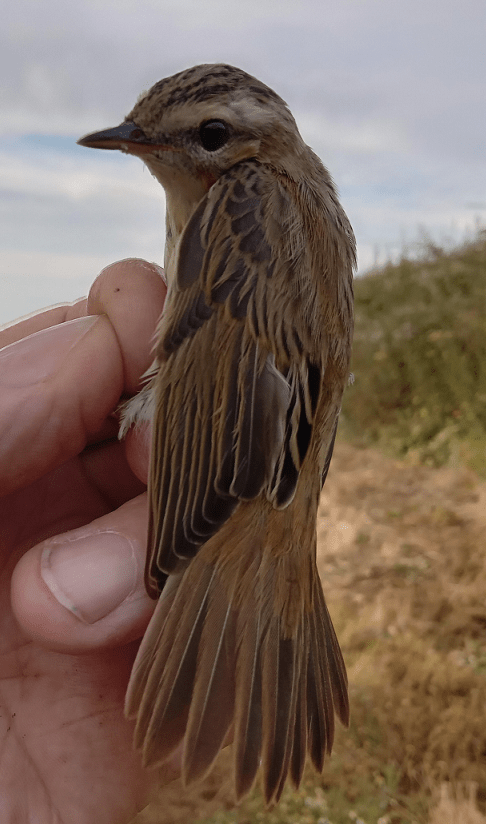 This is only the second Yellow Wagtail that I have ever caught and ringed on my rings. I was lucky enough to have ringed five as a trainee at the Icklesham site in East Sussex, then nothing until we caught an adult male in May 2021 at Brown’s Farm. I am aware that numbers have increased on the Marlborough Downs to the north: perhaps they are starting to expand to the south or perhaps the former was on Spring migration and this one is on an early Autumn migration (there’s a lot of it about). Needless to say, another first for the year.