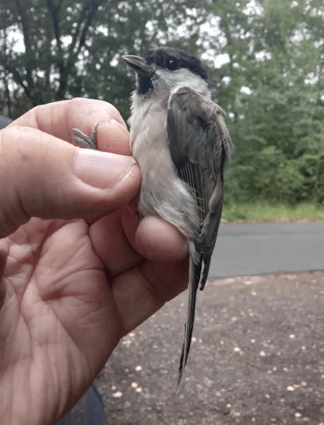 Our one retrap, Marsh Tit AKP6754, was ringed in December 2020 and has been caught on another ten occasions. Mainly it has been caught at the feeding station in the winter. This is the first time we have caught it in the early autumn. Interestingly, it was caught in the same net as the three juveniles. I wonder if they were related.