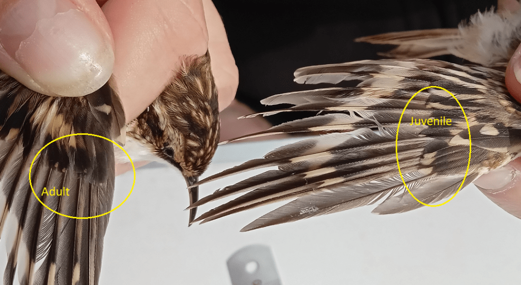 I did have the opportunity to show Laura and Miranda how to definitively age Treecreeper, as we had two adults and a juvenile: