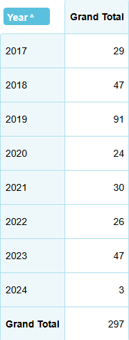 With the exception of the spike in 2019, it is a fairly consistent figure until you get to this year. I have spoken with the ringer who runs the site and he is absolutely bemused by the situation. The habitat has not changed, there have been no additional military exercises in this part of the SPTA this year. It is outside of the impact ones, so there shouldn’t have been more disturbance than usual. Definitely odd for a relatively sedentary resident species. The impact has been to make 2024 significantly the worst year for the species since this site was regularly monitored: