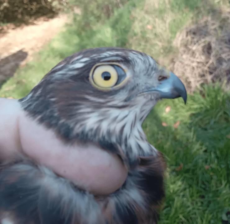 This is actually the first Sparrowhawk that my team has caught this year. To be fair, one a year is normal: in the last 11 years we have caught at least one each year, with two in three of those years, most recently in 2021. It was a huge hit with the audience, and I managed to get the bird processed with minimal damage (to my fingers, the bird was never in any danger).