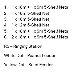 The white dot between nets 3 and 4 is the feeding station comprising a seed feeder and a peanut feeder. The feeding station was set up on the previous Wednesday but, no doubt not helped by the foul weather, it hadn’t really been found yet: just a few peanuts had been eaten and the seed feeder hadn’t been touched. I had taken feed to top up the feeders but, as they were still relatively full, at the end of our session I went off to Somerford Common and topped up the feeding station there, as we were planning to be there today.