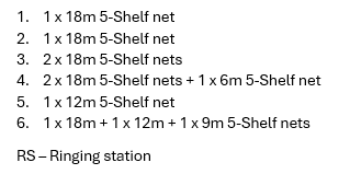 With the weather forecast from every source saying that there would be a low breeze, with some gusting, coming from the south-east, I decided to go to the western side of Blakehill Farm, by the Whitworth building. When I say every source, I mean: weather.com; MeteoBlue; xcweather and the Met Office: they all forecast the same thing. I was joined by David, Ellie, Laura, Adam and Mark. We met at 6:30 and set the following nets, knowing that they would be sheltered from the prevailing wind by hedgerows, trees and buildings: