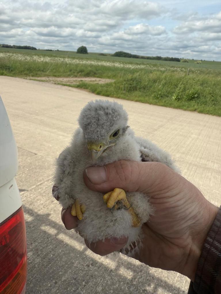 We also checked 13 Kestrel boxes: three with Kestrel pairs, one with three chicks that we ringed. Again, Ellie got her first experience of handling and ringing Kestrel chicks. Jon helped her with how to hold and manage the birds for ringing. She was rather lucky in that they were at the stage where they are easy to handle. Give it another week or so and they will be all beak and claws!