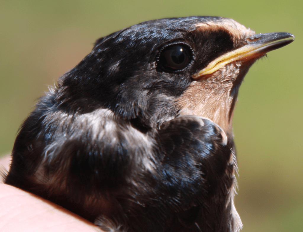 From there we headed over to Upper Waterhay to check their Barn Owl boxes and see whether there were any Swallows on eggs or ready for ringing. As I have already said, the boxes showed no signs of Barn Owl activity. Most of the Swallow nests were empty, but with plenty of adult activity, so I am pretty sure that a third brood is on the way. We will check back in a few weeks. However, one of the nests did contain four youngsters, so Ellie got to ring her first Swallow pulli. I say pulli because they were all nicely tucked up in the nest and showed no signs of trying to fly away, but their wing feathers were pretty near full grown, so they won’t be there much longer: so we finally got our timing right!