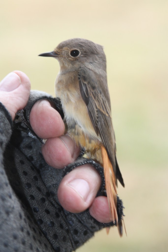 The next round produced another seven birds: Blackbird, Blackcap, Robin and Bullfinch plus, astonishingly, another two Redstart! Ellie got to ring her first and Laura her second. To have gone from none for just about 12 years to three in one session is lovely.