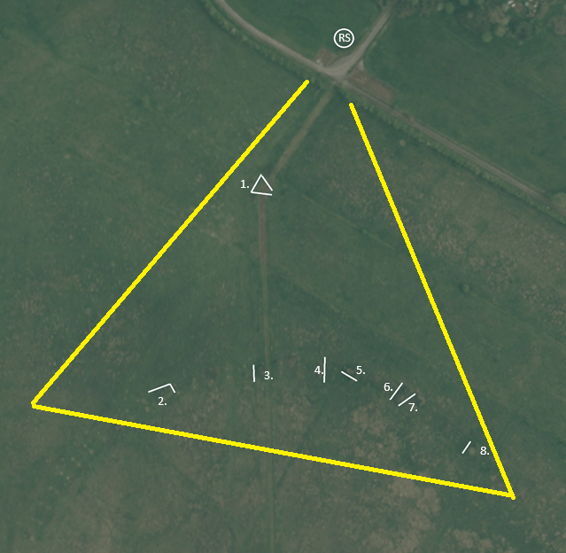 Once again, today we set our Mipit triangle, and I will keep doing do so until we find that they have arrived and we start catching them. I was joined by David, Laura and Adam, with Daniel and, later on, Mark and Trevor to help with the packing up and general chatting in between rounds. We set the following nets: