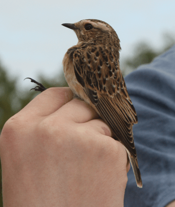 The list for the session was: Blue Tit [2]; Great Tit [1]; Wren (1); Whinchat [4]; Whitethroat 1[3](3); Lesser Whitethroat [1]; Chiffchaff [1]; Willow Warbler [1]; Greenfinch [1]. Totals: 1 adult ringed, 14 juveniles ringed from 8 species and 4 birds recaptured from 2 species, making 19 birds processed from 9 species.