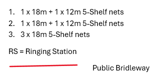 With the weather forecast to be likely to start raining at about 11:00 we agreed to meet at 6:00 so we could get a few hours in before then. I was joined by Miranda and Ellie, which in itself is slightly unusual, their being my midweek stalwarts of recent times. We set the following nets: