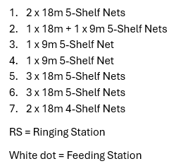 Because of the size of the ringing team we had out, I decided to set some additional nets. We set the following: