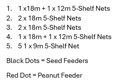 The white dot in the middle of ride 2 is the feeding station: one 1l peanut feeder and one 1.5l seed feeder.
