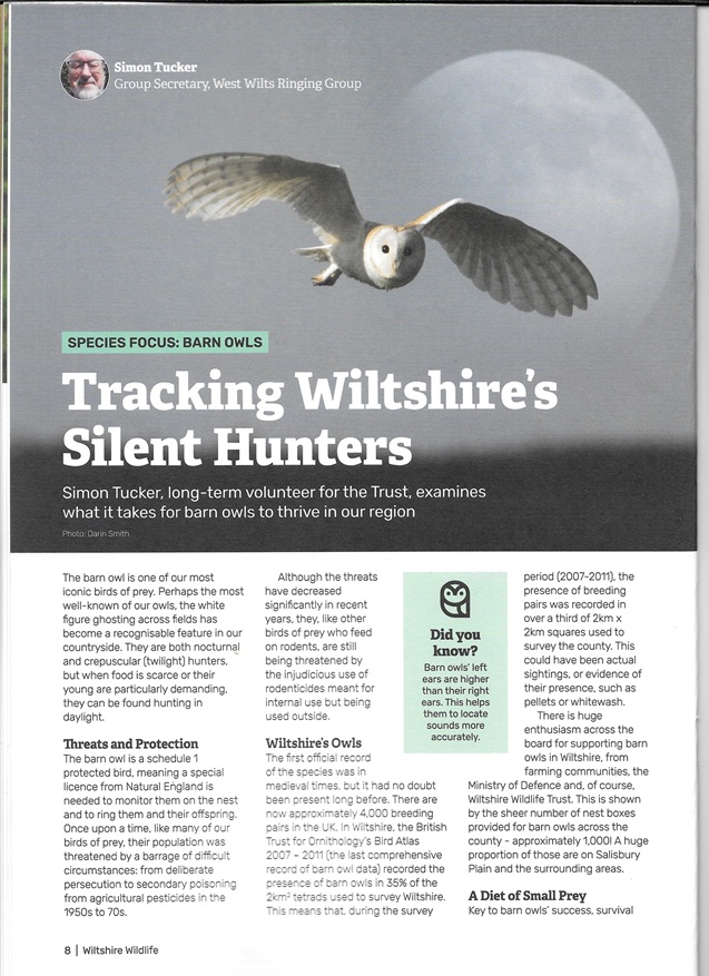 I was extremely flattered to be asked to write an article on Barn Owls in Wiltshire by the Wiltshire Wildlife Trust. I wrote my piece and sent it in, we agreed a few edits and then they set it out beautifully: