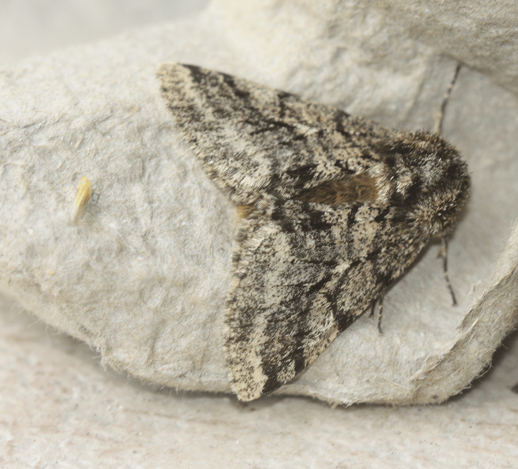 Our next box is along a back lane that leads to a shooting copse. It is one of the easiest to get to and rarely disappoints. Only last year it was taken over by Grey Squirrel and there was no sign of Barn Owl activity. I removed the drey at the end of the breeding season last year and delighted to say that we have Barn Owls back in residence. Again, two adults flew off as we approached. Inside the box we found three newly-hatched chicks and three eggs. The three newly-hatched were about to become four, because we could hear another youngster making noises and its egg was cracking around the middle.