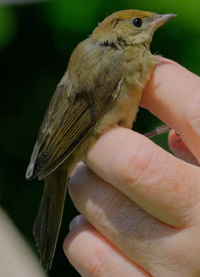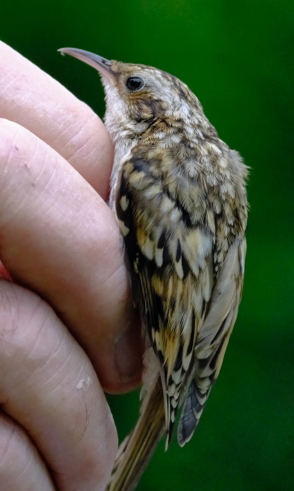 So, to the birding: I was joined by Rosie, doing her usual of helping me out, ringing a few birds before heading off to her work with the Trust, and Miranda, who was able to stay for the whole session. We didn’t have a massively busy session, with just 21 birds caught and processed. The list from the morning was: Treecreeper 1[2]; Blue Tit [2]; Long-tailed Tit [1]; Wren [1](1); Dunnock [2]; Robin [3]; Blackbird 1(1); Cetti’s Warbler (1); Blackcap (2); Garden Warbler (1); Whitethroat 1; Chiffchaff [1]. Totals: 3 adults ringed from 3 species, 12 juveniles ringed from 7 species and 6 birds retrapped from 5 species, making 21 birds processed from 12 species.