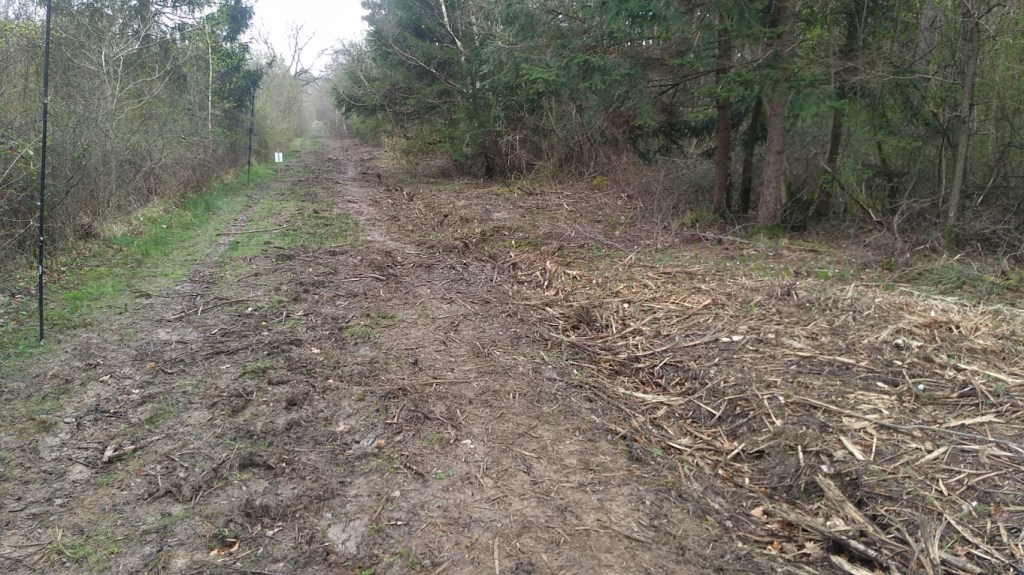 We were away from site by 10:30, rather disappointed. I had a quick reconnaissance and think that I have found an alternative area to replace the devastation. Over the weekend I will have a more detailed look and establish the net rides.