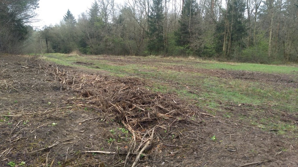 The weather itself was not great: no rain, no wind, but at one point the temperature suddenly dipped and it became very cold, so we packed up and tried to leave: only to find our exit blocked by a rather large lorry picking up the last of the timber stacks, that were supposed to have been removed by the end of March. It was a minor hold up.