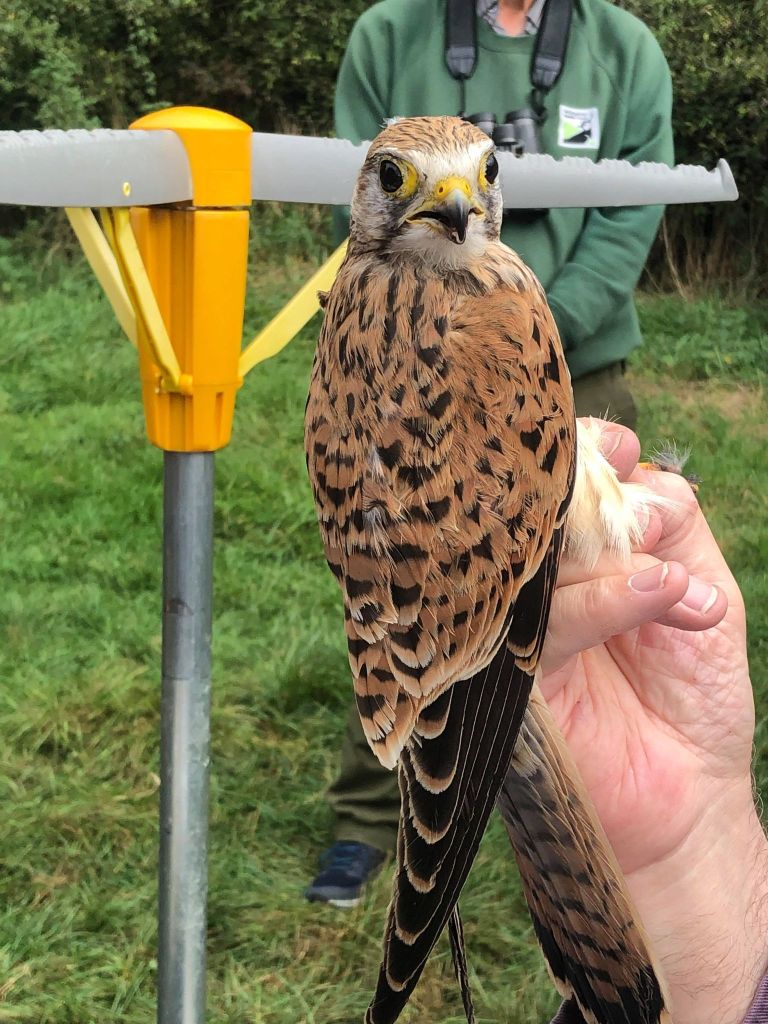 The one that got away: in last year’s session we caught a Kestrel. This year we had a Kestrel chase a Meadow Pipit into the nets. Unfortunately, it managed to extricate itself before we could get to it! Mind, in trying to correct the fumbling of a now departed trainee, last year’s Kestrel lacerated my thumb, so perhaps that was a good thing!