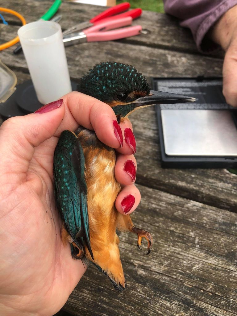 I am quite astonished at the depth of interest from people looking to join or work with our merry band. After Anna joined in last month, this month I have also been joined by Miranda, Rosie and Adam on several occasions, along with most of the rest of the team for the odd session (particularly helpful at the ringing demo were Rosie, Adam and Steph – just as David was a hero at August’s demo). Adam is a C-ringer and has worked with others in the area before, Miranda and Anna are testing the water to see if they are going to take it on. Rosie works with the Estates Management team at the Wildlife Trust and has, so far, been really helpful with the setting up before having to leave early, after only processing a couple of birds, to get to work.