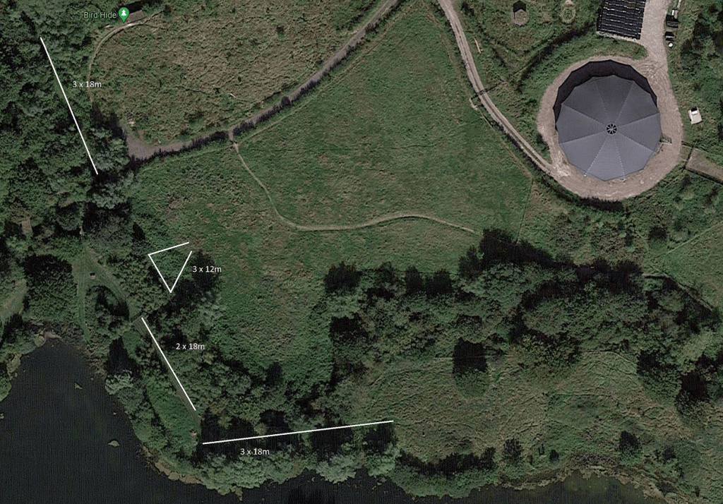 As a result, I decided to set up in the garden. Just 2 x 6m nets, one either side of the feeder set up: an arch feeder support with 2 x Sunflower Hearts; 1 x Fat Balls feeders (X1 on the diagram) and 1 x Peanuts (X2 in the apple tree). This is my setup: