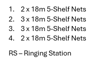 With the weather earlier in the week being dreadful, and the forecast for the weekend being worse, and Thursday I had other appointments, so Friday looked like the only day available for a session. That said: it was going to be wet and windy from midday, so we were on a tight schedule. David and I met at 7:45. As it was just the two of us we only set the following nets: