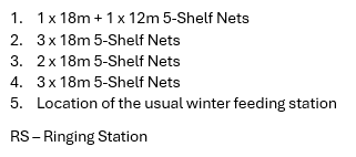 On the face of it, compared to last January it was a disappointing month but, considering the weather and the impacts on bird life, and the fact that it is comparable with previous years prior to 2024, no real concerns about the result. Indeed, the key difference between the two months is in the number of full sessions we were able to fit in. There were just over half as many full sessions as last January, so the numbers caught per session were just about equal. Another factor from my catches was, quite simply, I did not manage to set up my usual feeding stations at all of my winter feeding sites: Red Lodge, because I need to find time to clear the winter rides; the Firs, because I did set a feeding station but in three weeks the only feeder found was the peanut feeder destroyed by squirrels and Webb’s Wood, because last year the feeders were stolen from the site and I haven’t found a position that I think would be safe from such people. The impact is quite marked. Last January my Braydon Forest team processed 436 birds in six sessions, this January it was just 168 birds in four sessions.