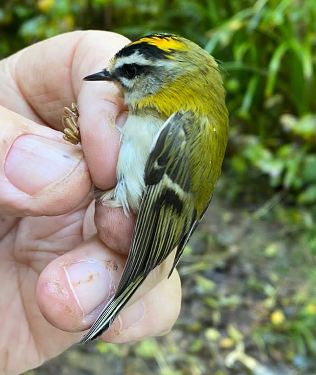 I was joined for the morning by Miranda. We met at 7:30 and set the nets. The nets were open by 8:30 but we didn’t see our first bird until 9:15: a retrapped Goldcrest. At 9:45 we caught a Chiffchaff and another retrapped Goldcrest. It wasn’t looking good but, at 10:15, we did another round and whilst Miranda was extracting a Great Tit, I extracted another Goldcrest and this: