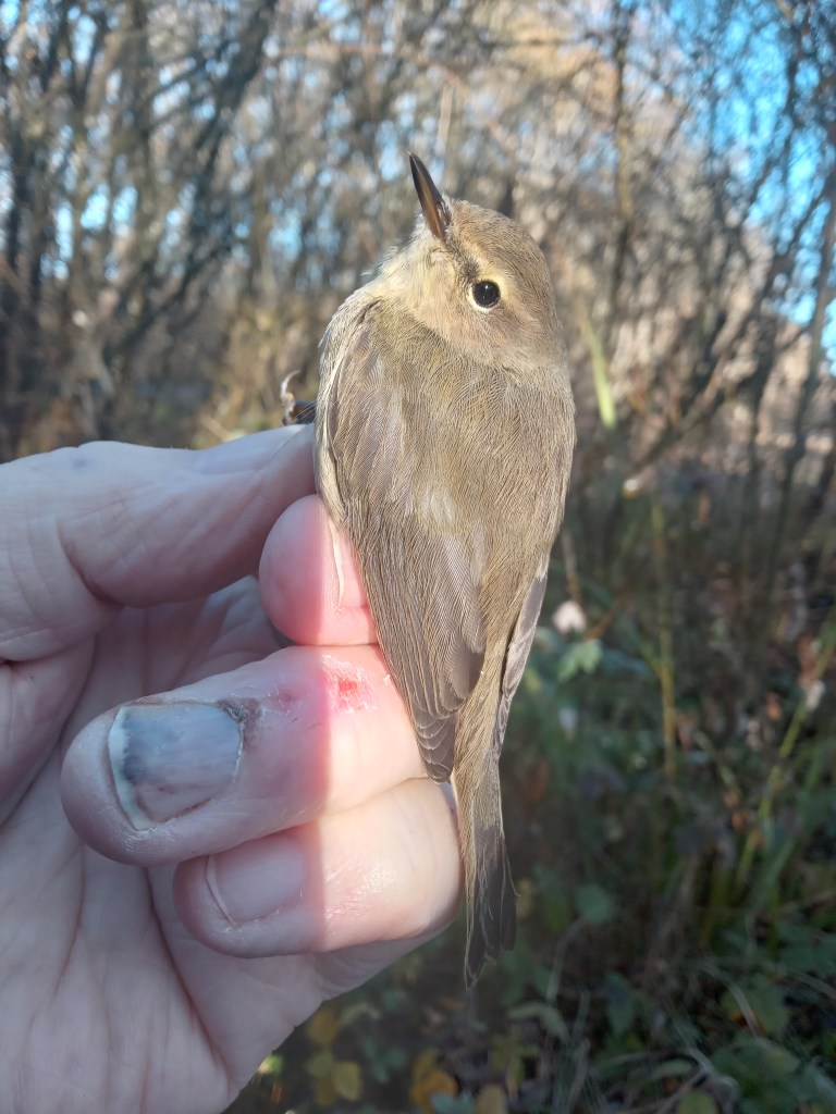 Once we had finished processing the birds it was close to 11:00 but with so few nets to take down we were away by 11:40: wet, cold but quite happy. When you look at it, we had the nets open and active for just over 2 hours and caught 75 birds (77 if you count the scaly-legged Chaffinch and the Dunnock that escaped when someone accidentally opened the pocket it was sat it). Our previous session produced 103 birds in four hours: that is a lot of birds this site is producing. Ironically, the local community, all of whom feed birds in their gardens, aren’t seeing lots if titmice on their feeders, but do mention the large numbers of Goldfinch they have, and how Greenfinch and Chaffinch numbers have started to recover: just like my garden really! Shame that we don’t catch more of them in our ringing area.